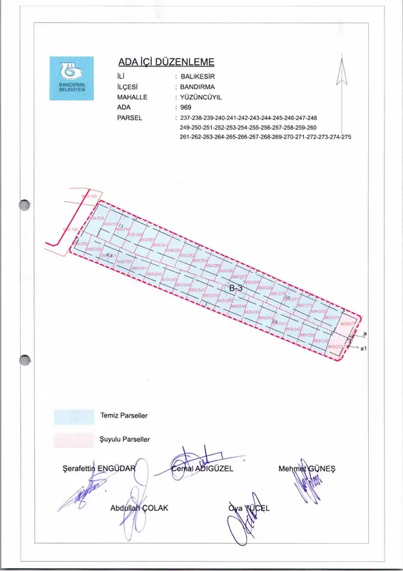 Bandırma Belediyesi Encümeni, 21 Ocak 2026 tarihli ve 65 sayılı kararı ile 100. Yıl Mahallesi'nde bulunan 969 ada içi düzenlemesini onayladı.