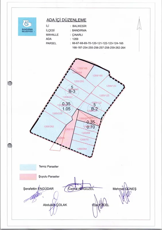 Karar, 1269 ada içinde yer alan 66, 67, 68, 69, 70, 120, 121, 122, 123, 124, 165, 166, 187, 254, 255, 256, 257, 258, 259, 262 ve 264 numaralı parsellere ait düzenlemeyi kapsıyor.